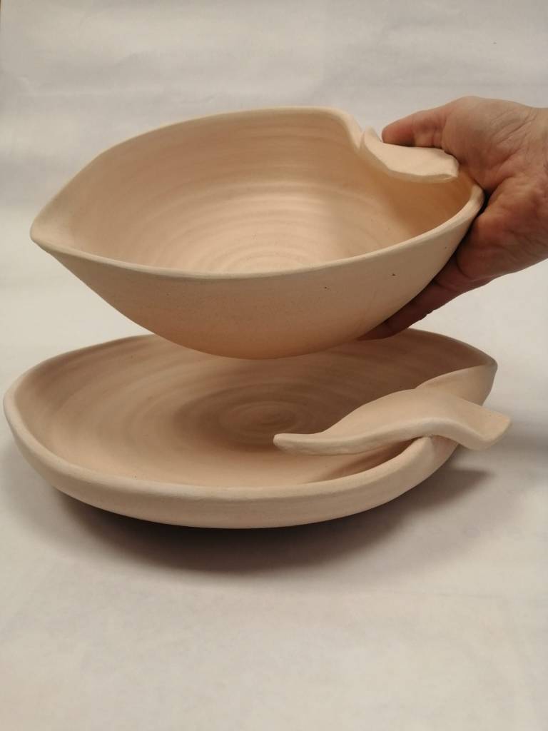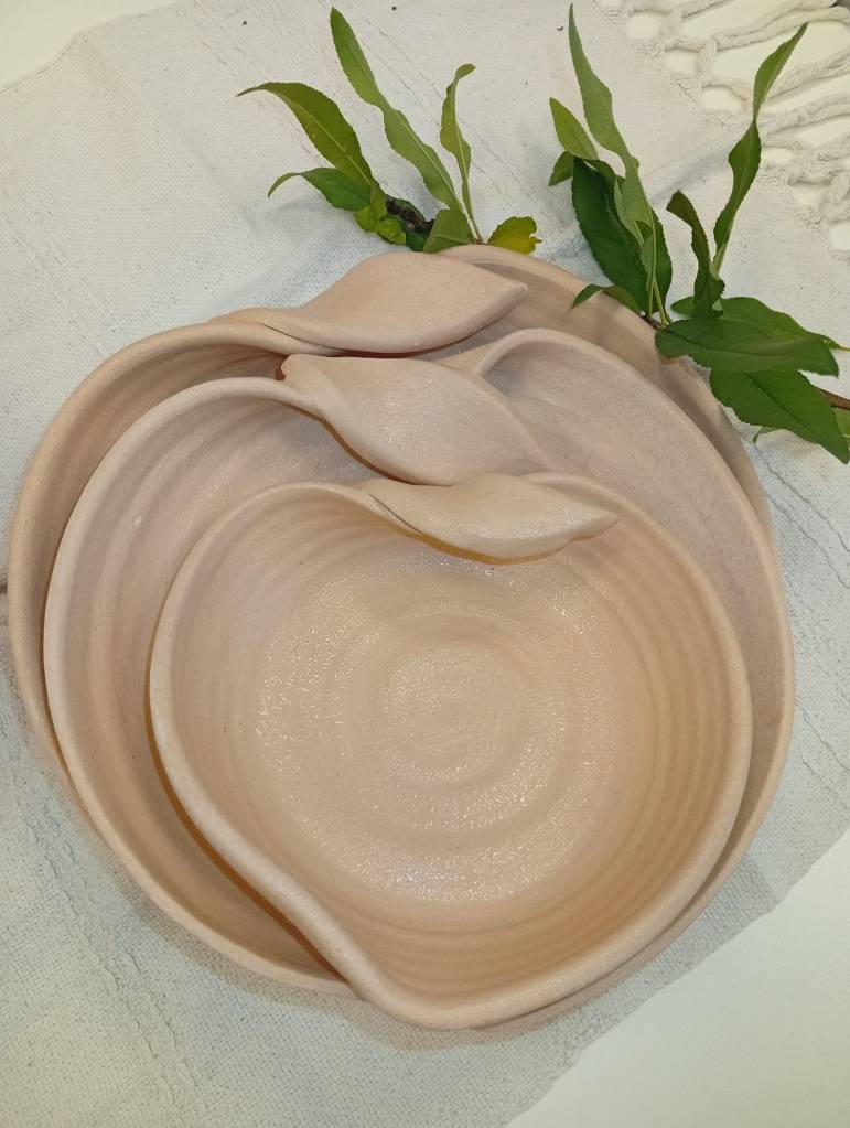 Su último proyecto apunta a la identidad duraznense: “Son unas obras con forma de durazno, acompañadas de una frase que tiene que ver con por qué Durazno se llama así. Empezamos a investigar con varias personas sabias del tema, buscando en libros, y descubrimos que era porque había muchas chacras acá. Comenzamos a producir distintos tamaños de platos y fuentes, como para copetín. Es una obra que busca ser identitaria del departamento. Va todo en color natural de la arcilla, para homenajear también el color de nuestra tierra duraznense”.